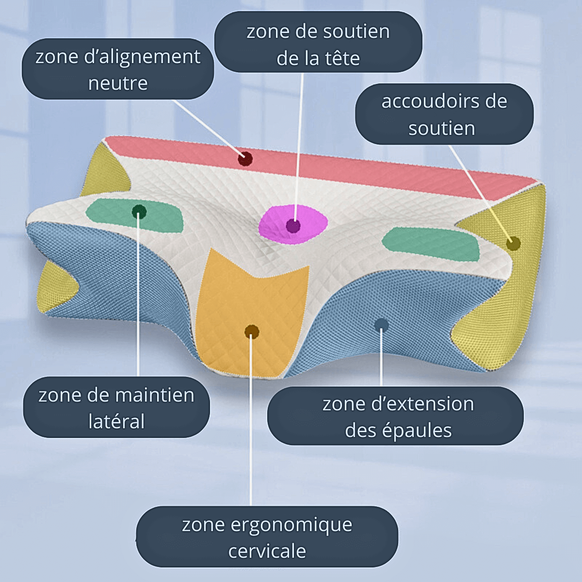 Maintien cervical 360° → votre nuque reste stable toute la nuit, sans flexion ni torsion douloureuse.